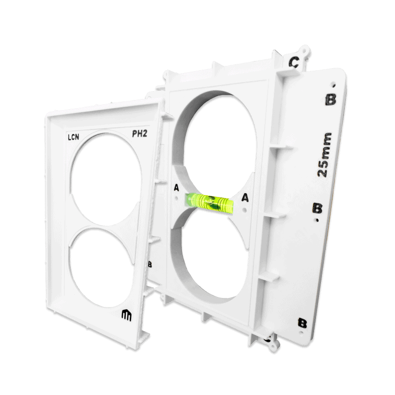 Einbaurahmen für den flächenbündigen Einbau von LCN-GT-Tastern in Hohlwänden Der Einbaurahmen LCN-PH2 ermöglicht eine flächenbündige Montage der Taster in Hohlwänden. Ideal für moderne Wohnräume und Büros. Lieferung mit Montagehilfsmitteln für eine einfache Installation.