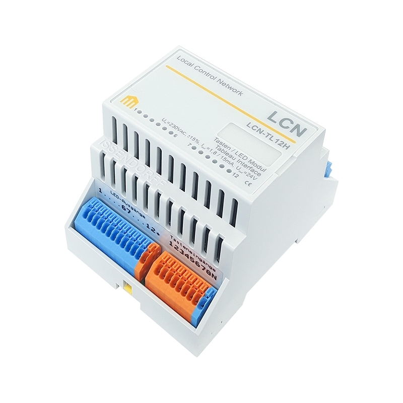 Il LCN-TL12H è un versatile convertitore di interruttori progettato per il montaggio su guide DIN. Consente il collegamento alla connessione T del modulo LCN ed è stato specificamente sviluppato per collegare pannelli convenzionali con pulsanti e LED di visualizzazione. Il convertitore di interruttori cattura fino a 8 ingressi di impulso e controlla fino a 12 LED arbitrari, sia con che senza resistori integrati.