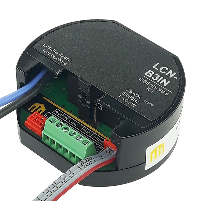 LCN-B3IN to wszechstronny czujnik binarny zaprojektowany do stosowania w puszkach podtynkowych. Umozliwia podlaczenie do zlacza I modulu LCN i moze oceniac do trzech potencjalnie wolnych styków ciaglych. Szczególna cecha tego czujnika jest zintegrowane zasilanie, które zapewnia mozliwosc zapytania dla zewnetrznych czujników, takich jak bariery swietlne lub czujniki hallotronowe, które wymagaja zasilania.